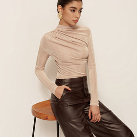 Asymmetrisch geschnittenes Oberteil mit hohem Ausschnitt und Faltendetail
