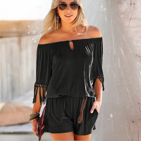 Entdecken Sie böhmische Eleganz mit unserem Boho-Jumpsuit. Perfekt für Festivals oder entspannte Sonnentage. Freie Schultern und elastische Taille garantieren eine schmeichelhafte Passform.