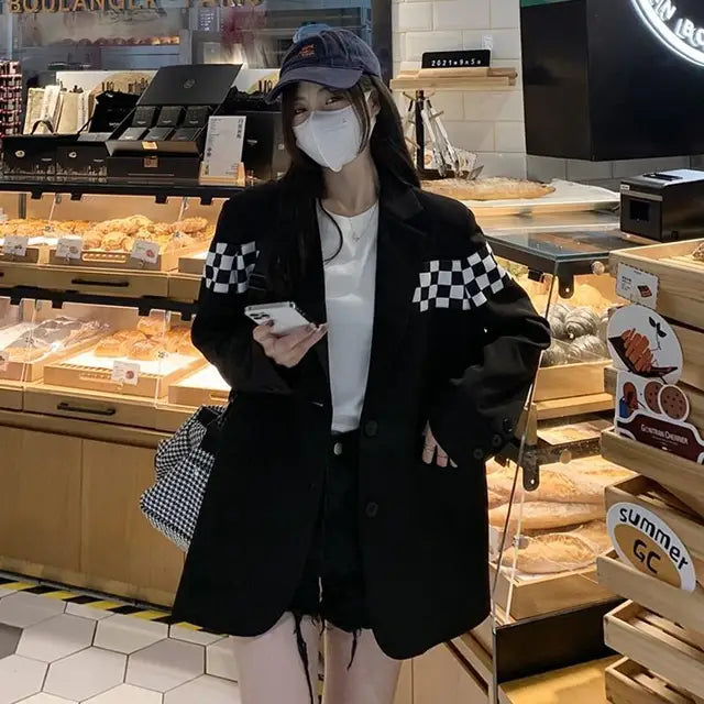 Der Avelena Blazer ist ideal für kreative Business-Outfits oder Abendmode. Markante karierte Schulterdetails setzen ein starkes visuelles Zeichen. Ein Mode-Statement und Symbol für Individualität.
