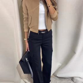 Die Ava Bomberjacke vereint Stil und Funktionalität. Aus robustem Polyester gefertigt, wertet sie Ihr Outfit auf und bietet Komfort.