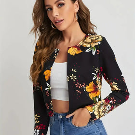 Avelena: Edler, schlichter Blazer mit offenem Schnitt und Blumenmuster