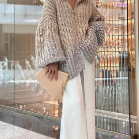 Stil und Bequemlichkeit vereint in unserem Zwei-Teiligen Set, bestehend aus einer einfarbigen gestrickten Jacke mit Pailletten und passenden Anzughosen!