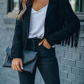 Avelena Fransen-Saum Cardigan, E-Girl Bikerjacke, 90er Vintage Streetwear