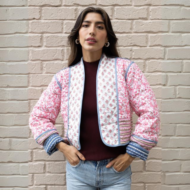 Avelena gemusterte Bomberjacke mit farblich abgesetzten Paspeln