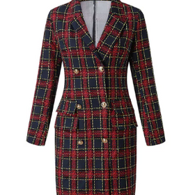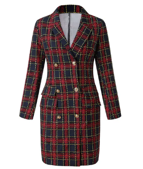 Das Avelena, karierte Blazer-Kleid mit Gürtel, ist ein modisches und vielseitiges Kleid. Das klassische Karomuster und der passende Gürtel betonen die Taille. Ideal für Büro und Freizeit, verbindet es zeitlose Eleganz mit modernem Stil.