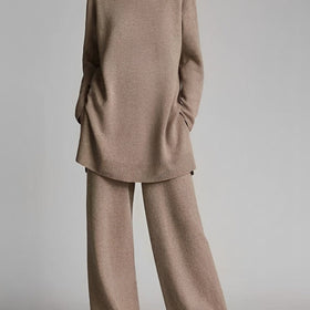 Das Azaria Set kombiniert einen schicken Rollkragenpullover mit einer komfortablen Hose mit weitem Bein. Perfekt für Alltag und Büro, vereint es Eleganz und Bequemlichkeit. Ideal für modebewusste Frauen.