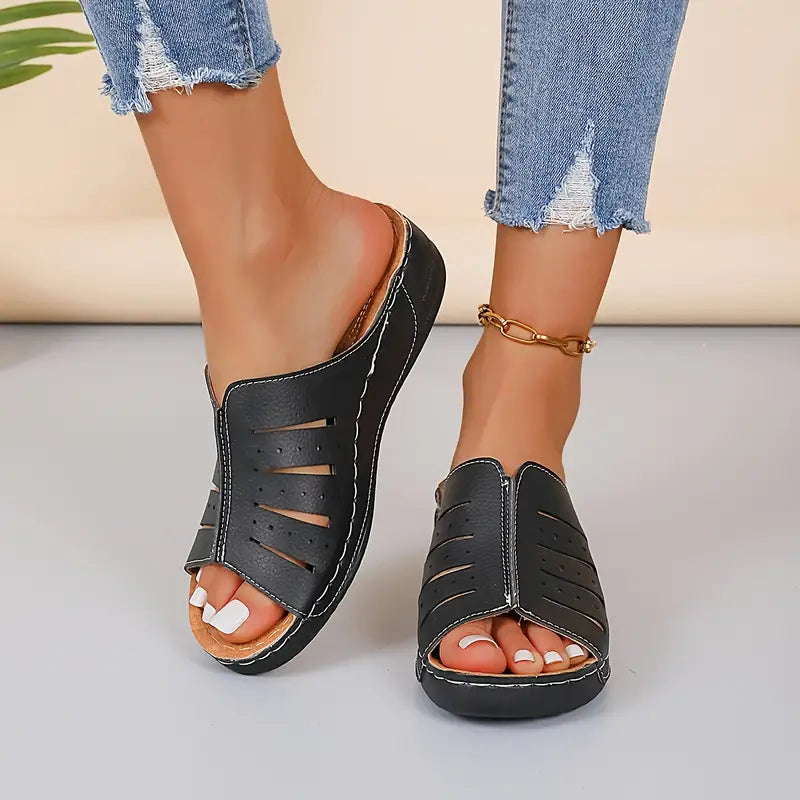 Schicker Komfort: Ishi Strandpantoffeln mit niedrigem Keilabsatz