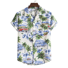 Baumwoll-Hemd für Herren im Vintage-Stil mit kurzem Arm