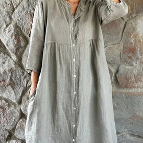 Das SKYE Strandkleid aus Baumwolle und Leinen verkörpert sommerliche Eleganz. Die weiche Baumwoll-Leinen-Mischung ist raffiniert, die lockere Silhouette bequem und schick. SKYE ist ein Statement-Stück, das die Sommerfreude zelebriert.