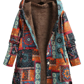Baumwolljacke mit Kapuze und ethnischem Blumenmuster (Calanthe)