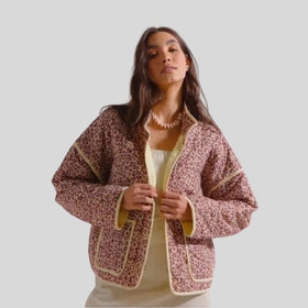 Bequeme, gesteppte Jacke mit Reißverschluss und Blumenmuster von Uzaer