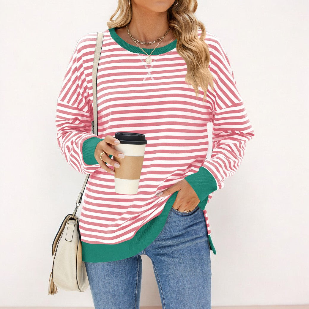 Bleiben Sie warm und stilvoll mit diesem gestreiften Pullover, ideal für kühle Tage. Sein klassisches Muster, der Rundhalsausschnitt und der lockere Schnitt machen ihn zu einer vielseitigen und eleganten Ergänzung Ihrer Garderobe. Genießen Sie unvergleichlichen Komfort und einen schicken Look für jeden Tag.