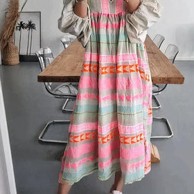 Das lebhafte Kleid Berelinde bringt die Farben des Herbstes in Ihren Kleiderschrank und sorgt für einen stilvollen Auftritt bei jedem Anlass.
