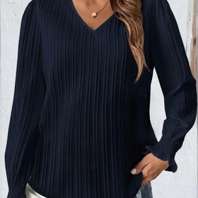 Trage dieses wunderschöne, stilvolle und bequeme T-Shirt, ideal für Frühling und Herbst. Der schmeichelhafte V-Ausschnitt und die einzigartigen Laternenärmel vervollständigen jedes Outfit.