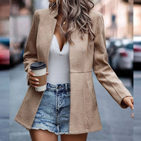 Figurbetonter Blazer mit langen Ärmeln, schickem Revers und zwei Taschen. Hochwertiger Mantelstoff.