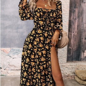 Blumenkleid mit langen Ärmeln und Schlitz von Rachael