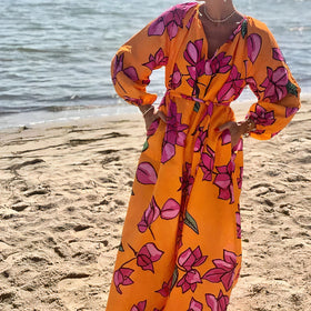 Blumenmuster-Maxikleid mit tiefem V-Ausschnitt – Lumi