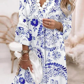 Blumenmuster-Tunika mit Spitze - Bohemian Damenkleid