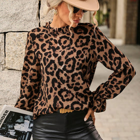 Bluse mit plissiertem Kragen von Fudus im Leopardenmuster