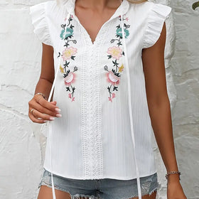 Blusen mit Blumenstickerei und V-Ausschnitt von Fudus