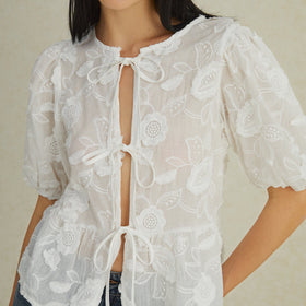 Blusen mit halbtransparenten Blumenknoten und Puffärmeln von Fudus