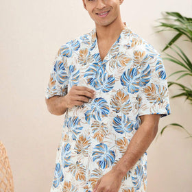 Kurzärmeliges Hemd mit böhmischem Festival-Pflanzendruck
