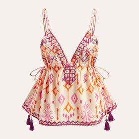 Boho Cami Top mit Stickerei und Quasten von Fudus