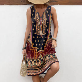 Entdecken Sie die böhmische Eleganz: Das Maki - Ärmelloses Boho-Kleid