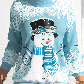 Der Pullover zeigt ein festliches Schneeflocken- und Schneemannmotiv, ideal für Herbst und Winter. Lange Ärmel und reguläre Passform schmeicheln jeder Figur.