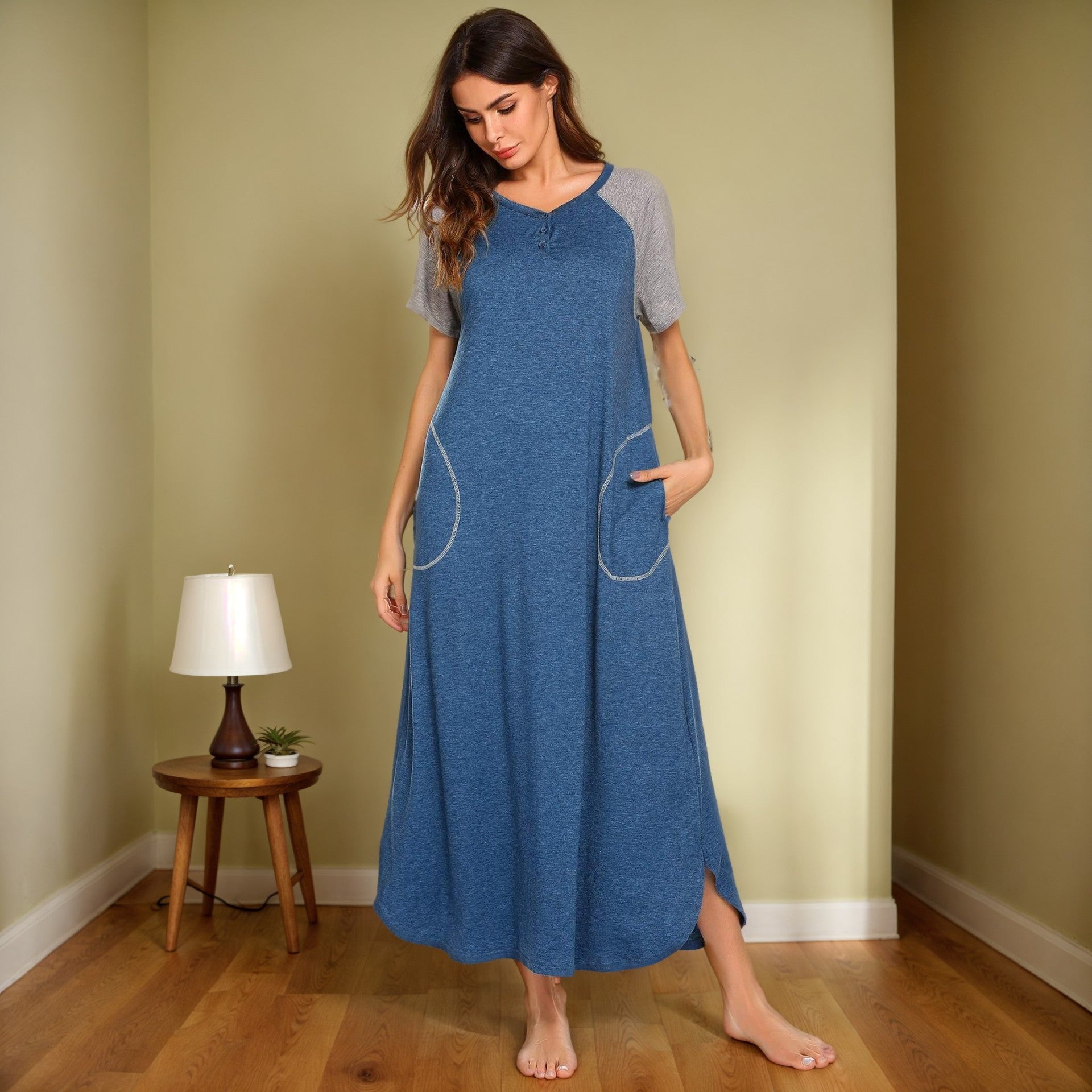 Buntes Baumwoll-Nachtkleid von Fudus mit kurzen Ärmeln