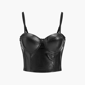 Figurbetontes Bustier-Oberteil mit strukturierter Oberfläche, vorgeformten Cups und verstärkten Nähten für eine definierte Silhouette. Verstellbare Träger und Hakenverschluss hinten. Angenehmes Material mit dezenter Struktur.