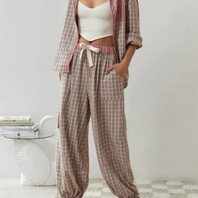 Das entspannte Hemd- und Hosen Chiara Damenset ist eine lässige und stilvolle Wahl für entspannte Tage!