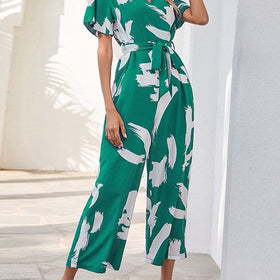 Chiffon-Overall mit weitem Bein in Olivgrün