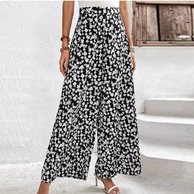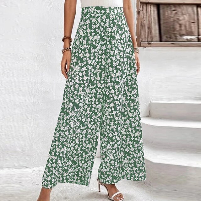 Diese Hose mit weitem Bein, hoher Passform und elastischem Bund zeigt einen floralen Print. Das modische Design sorgt für angenehmen Tragekomfort und schmeichelt der Figur.