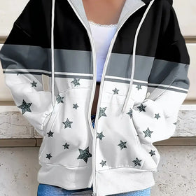 Der Clitraya Plus Size Star Muster Zipper Mantel ist ideal für modebewusste Frauen, die Komfort und Stil schätzen. Sein einzigartiges Sternenmuster und die lebendigen Farben bringen frischen Wind in Ihre Garderobe. Praktische Taschen und lange Ärmel bieten zusätzlichen Komfort und Wärme.