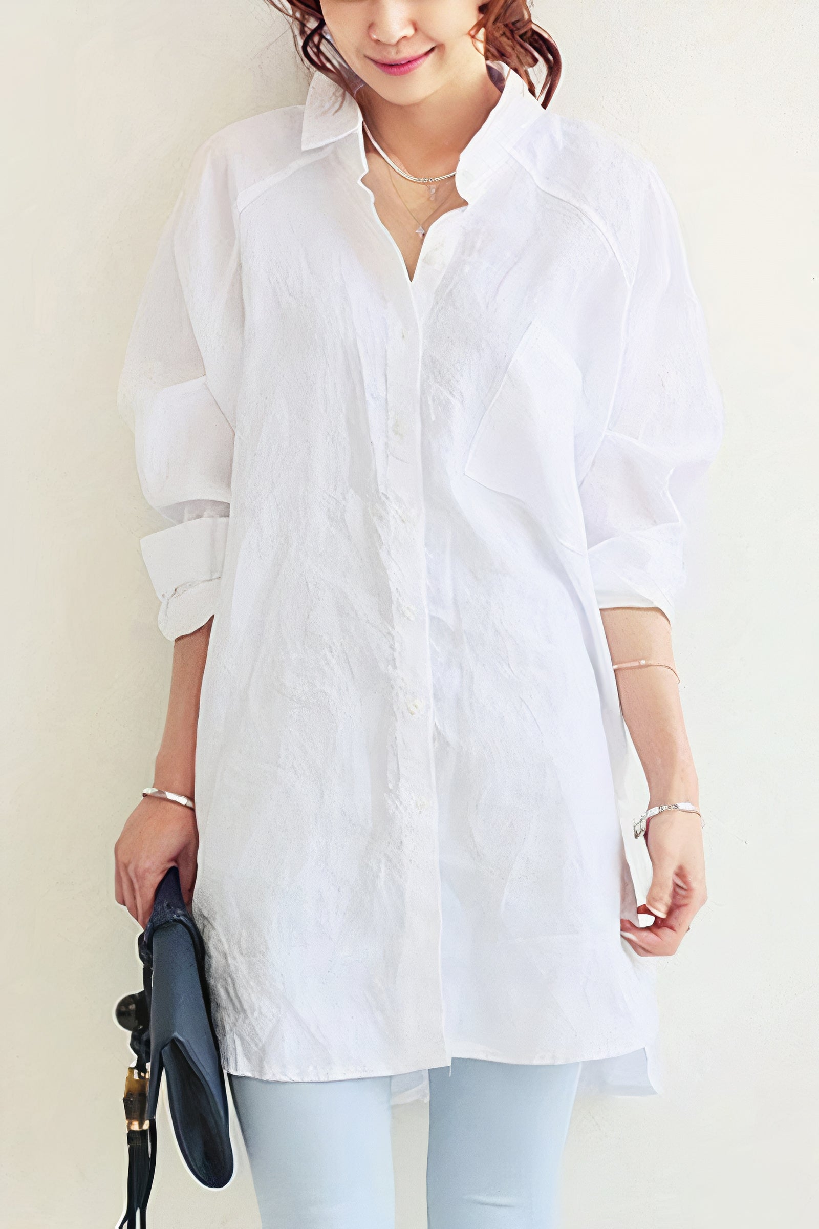 Das lockere Sommerhemd Cynthia bringt entspannte Eleganz in Ihre warme Wetter Garderobe. Hergestellt aus hochwertiger Leinen-Baumwoll-Mischung für Atmungsaktivität und Komfort. Der großzügige Schnitt bietet entspannte Passform für entspannte Tage oder Ausflüge.