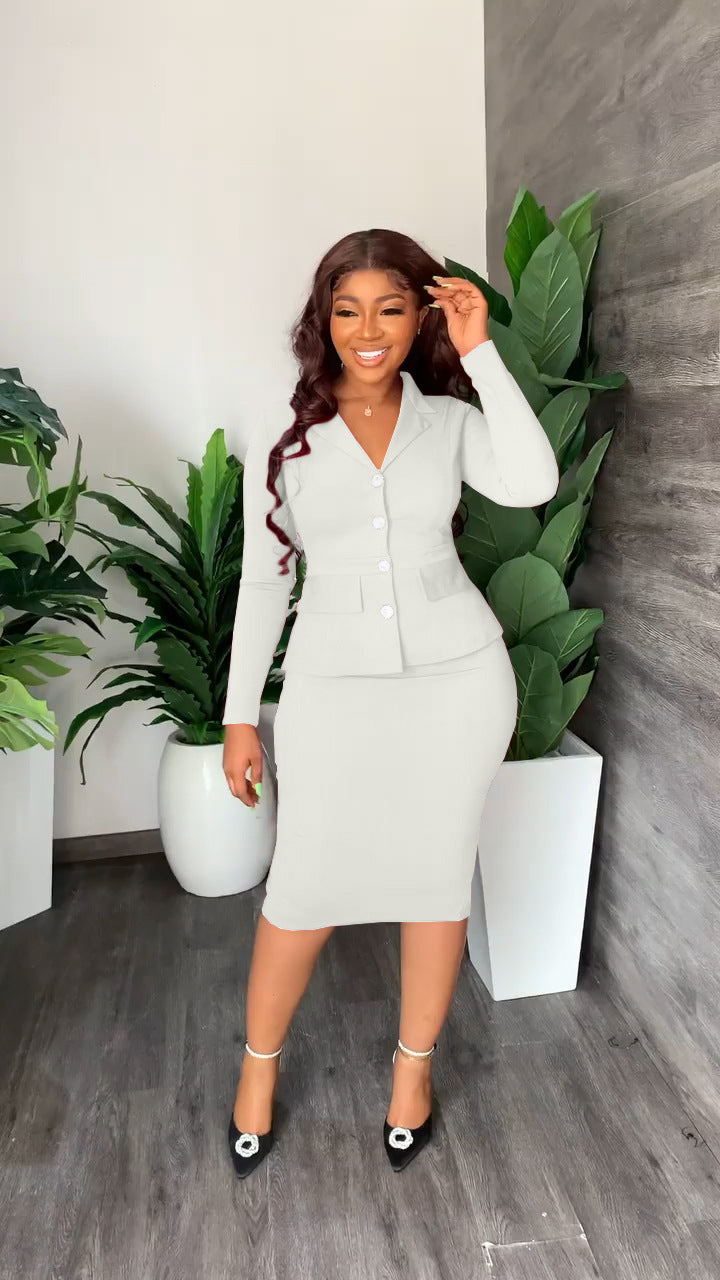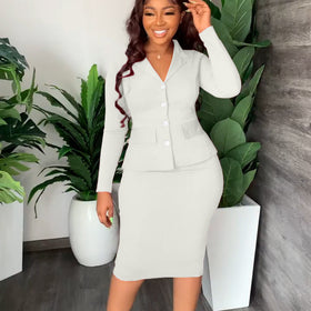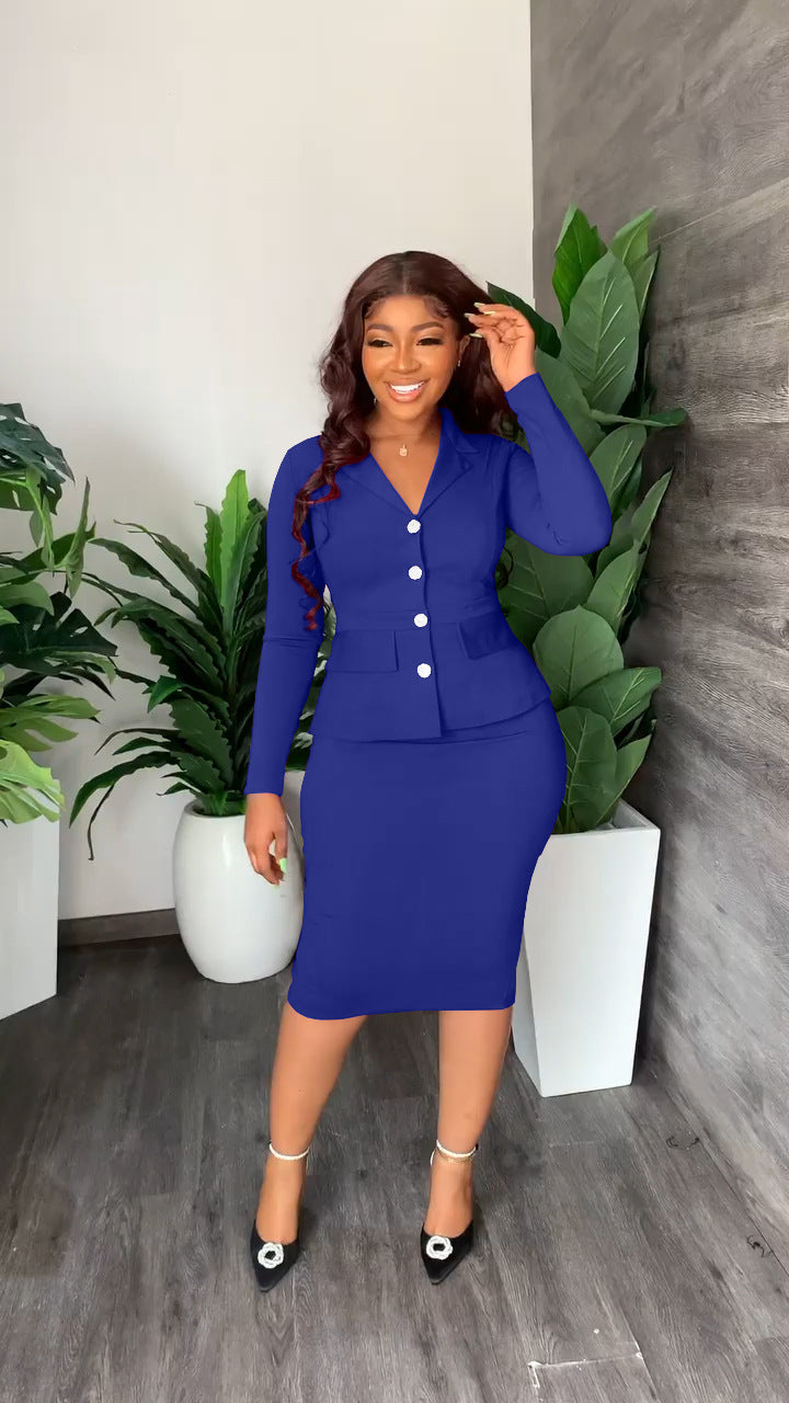 Starten Sie Ihre Karriere mit unserer "Damen-Businessmode" – einer Kollektion, die Ihre Figur betont und in jedem professionellen Umfeld einen starken Auftritt garantiert. Der stilvolle Blazer und der lange, vorteilhafte Rock bilden ein harmonisches Ensemble für Meetings und besondere Anlässe.
