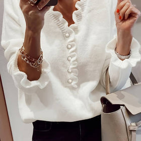 Damen Bluse: Elegante V-Ausschnitt Bluse mit Rüschen von Fudus