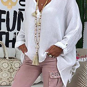 Damen Bluse mit V-Ausschnitt von Fudus im lässigen Stil
