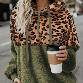 Ein stylischer Hoodie mit auffälligem Leopardenmuster und Farbblockdesign. Perfekte Mischung aus Komfort und Style.