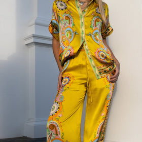 Suchen Sie ein bequemes Ensemble für verschiedene Anlässe? Das Avice Set vereint Eleganz und Komfort in einem zweiteiligen Seidenshirt mit lebhaften Prints.