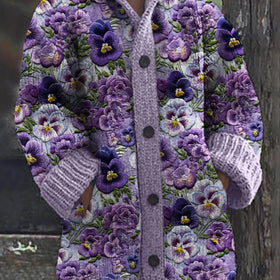 Dieser Hoodie-Kardigan verbindet Stil und Komfort. Das auffällige lila Blumenmuster ist feminin, der lockere Schnitt bequem für den ganzen Tag. Perfekt für kühlere Tage.