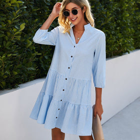 Damen Kleid: Modisch, kariert, V-Ausschnitt, Dreiviertelärmel