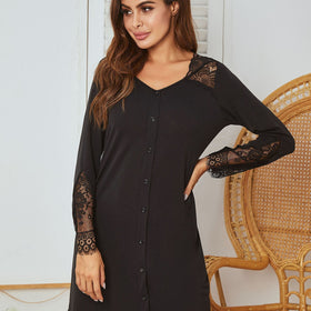 Damen Langarm Spitzen-Nachthemdkleid von...