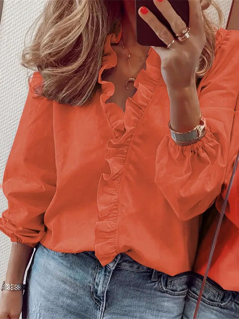 Damen Langarmbluse mit V-Ausschnitt von Fudus