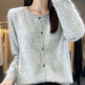Elegante Mohair-Strickjacke mit Knopfleiste