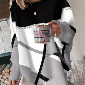 - Vielseitiger Stil: Durch die neutrale Farbpalette und das grafische Design lässt sich dieser Sweater mühelos mit Jeans, Hosen oder Röcken kombinieren für einen stylischen Casual-Look.