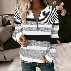 Damen-Pullover mit Streifen und kurzem Reißverschluss