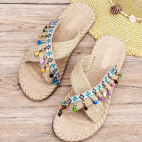 Unsere Damen-Sandalen mit Perlenfransen sind ideal für heiße Sommertage. Luftiges und leichtes Design, modischer Akzent für Ihre Sommergarderobe. Glänzende Fransen ziehen Blicke auf sich. Perfekt zu Sommerkleidern oder Shorts. Bequeme Passform für lange Spaziergänge, Strandpartys etc.
