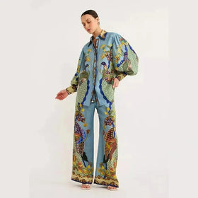 Das Leona Set vereint Mode und Individualität. Mit dem farbenfrohen Druck ziehst du alle Blicke auf dich. Es sorgt für einen selbstbewussten Auftritt, der stilvoll und bequem ist.